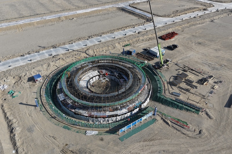 修通15.7公里道路、平整167.35萬方場地、澆筑4.2萬方混凝土、架起13.5公里廠區(qū)臨時用電線路、敷設(shè)5.4公里廠區(qū)管道、壘砌5.5公里圍墻,主廠房全面開工建設(shè),間冷塔和煙囪基礎(chǔ)完成開挖……如今,4平方公里的戈壁灘上,近百臺挖掘機、渣土車、起重機等各類機械作業(yè)繁忙、機器轟鳴,超千名建設(shè)人員穿梭其中,一派如火如荼的景象。